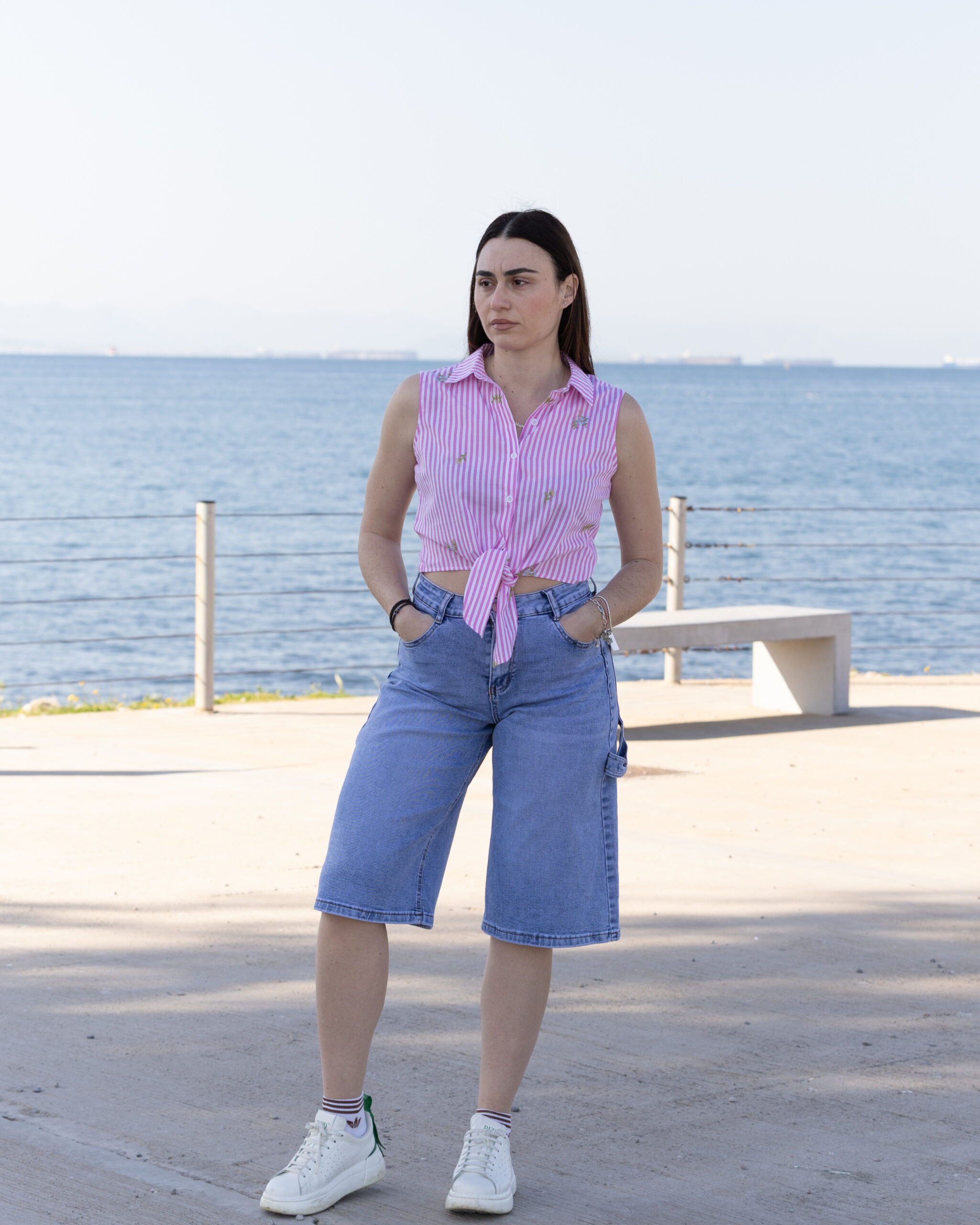 Καλαικρινο ανετο ζιπ κιλοτ διαθέσιμο και σε plus size με λεπτομερεια στο πλαι